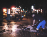 午前1時頃になると閉店を迎える屋台もちらほら(閉店時間は屋台によって異なります。)約1時間半をかけて屋台を片づけた後は道路を清掃。デッキブラシでゴシゴシこすり、しっかり水洗いします。